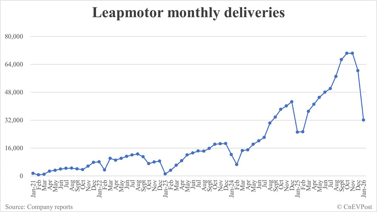 Leapmotor deliveries in Jan: 32,059