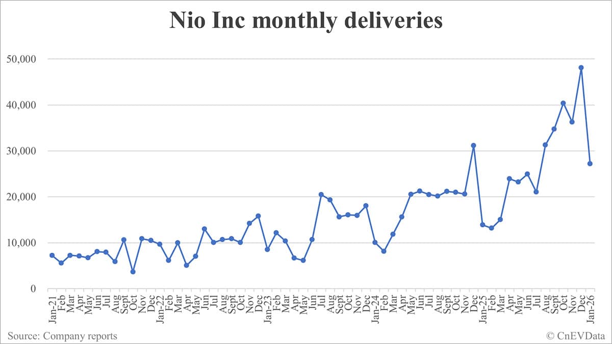 Nio deliveries in Jan: 27,182