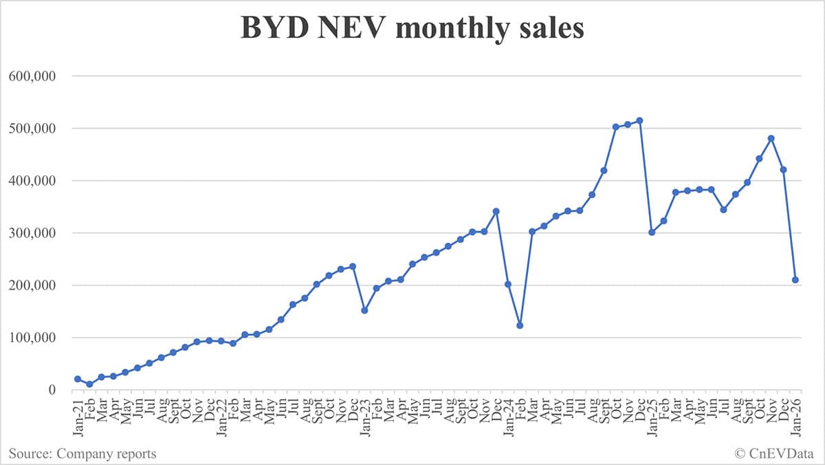 BYD NEV sales in Jan: 210,051
