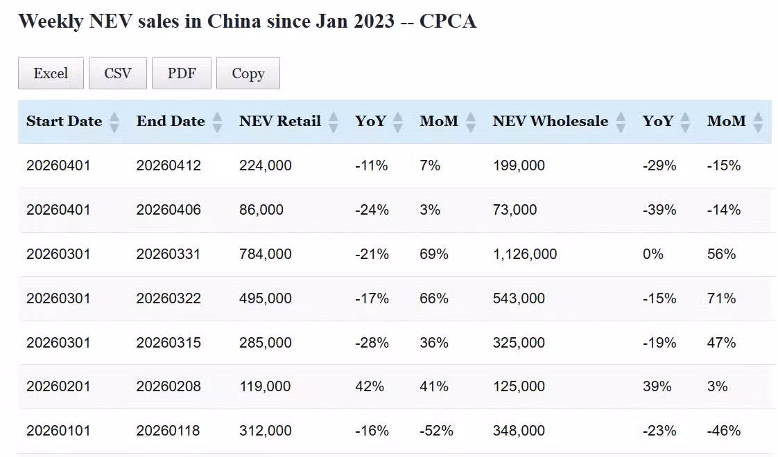This article includes detailed information and tables on CAAM's monthly NEV sales data.