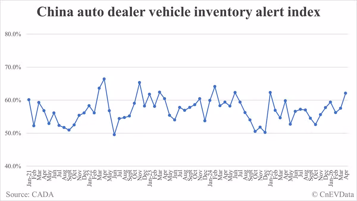 China's March automobile dealer inventory factor stood at 1.76, remaining above the alert line of 1.50 and exceeding the reasonable range.