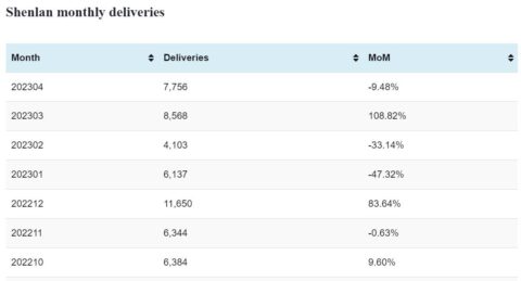 Shenlan deliveries in Apr: 7,756