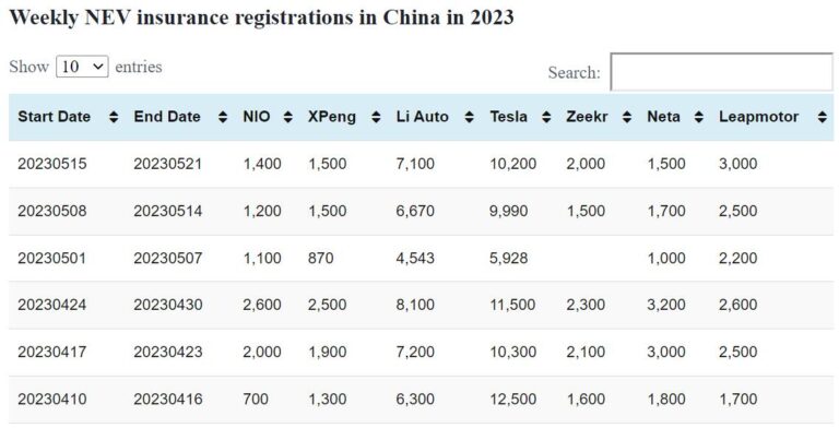 Data table: China NEV weekly insurance registrations