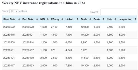 Data table: China NEV weekly insurance registrations