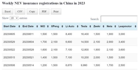 Data table: China NEV weekly insurance registrations