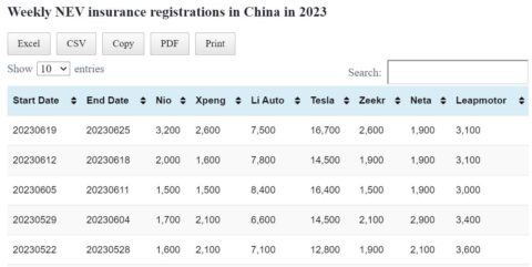 Data table: China NEV weekly insurance registrations