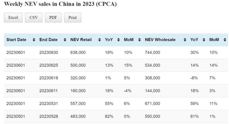 From June 1 to June 30, retail sales of NEVs in China were 638,000 units, up 19 percent year-on-year and up 10 percent from the same period last month.