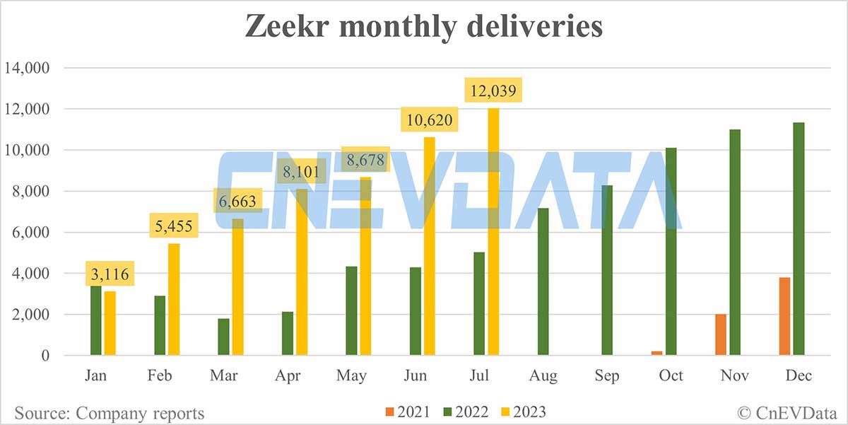 Zeekr delivered 54,672 vehicles from January to July, up 127.50 percent from 24,032 vehicles in the same period last year.