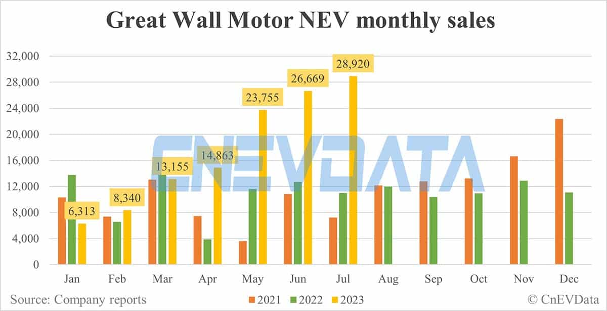 Great Wall Motor sold 122,015 NEVs in January-July, up 63.59 percent year-on-year.