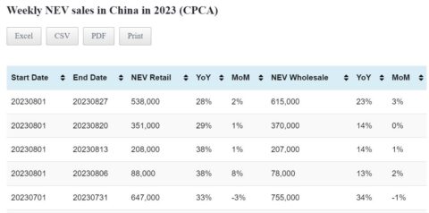 Data table: China NEV sales in Aug 1-27