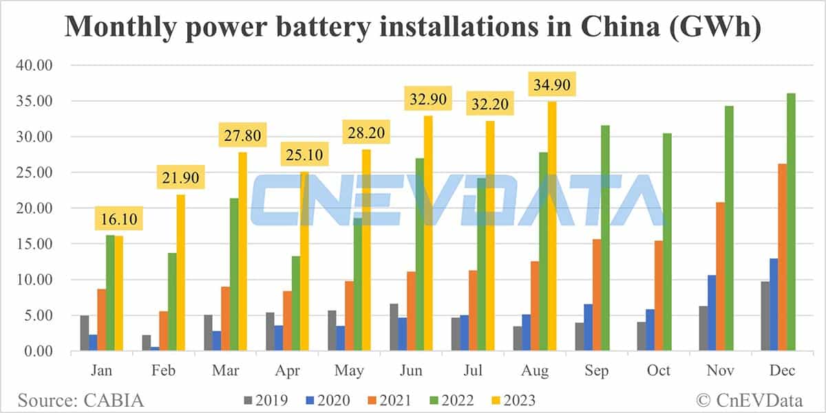 LFP batteries accounted for 24.1 GWh, or 69 percent of the total, up 39.7 percent year-on-year and up 11.0 percent from July.