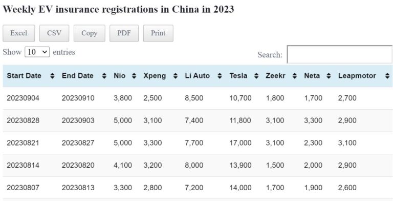 Weekly insurance registrations for vehicles of NIO, XPeng, Li Auto, Tesla, Zeekr, Neta, and Leapmotor are included in this article.