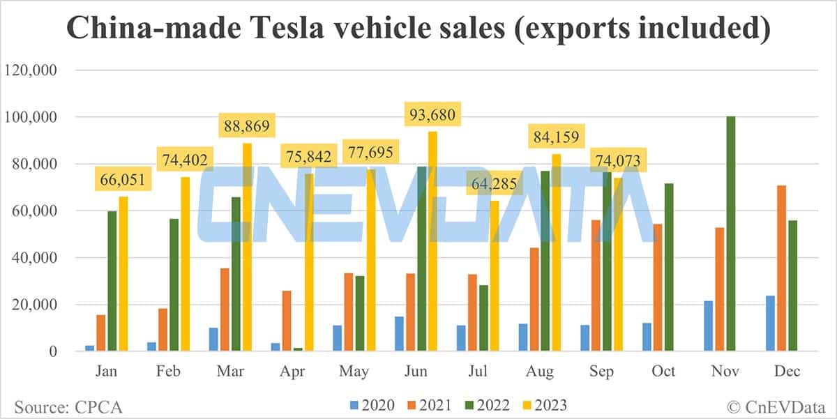 Tesla sold 699,056 China-made vehicles in the January-September period, up 44.71 percent from the same period last year.
