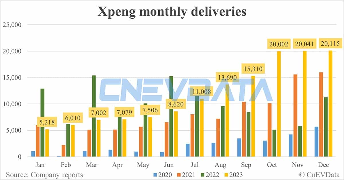 Xpeng delivered 60,158 vehicles in the fourth quarter, up 170.93 percent year-on-year and up 50.36 percent from the third quarter.
