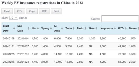 Data table: China EV weekly insurance registrations