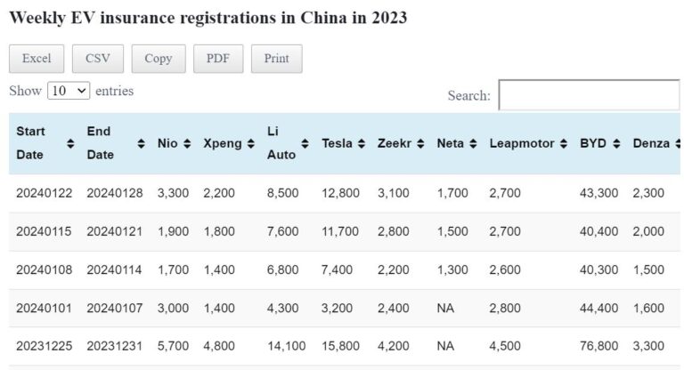 Data table: China EV weekly insurance registrations