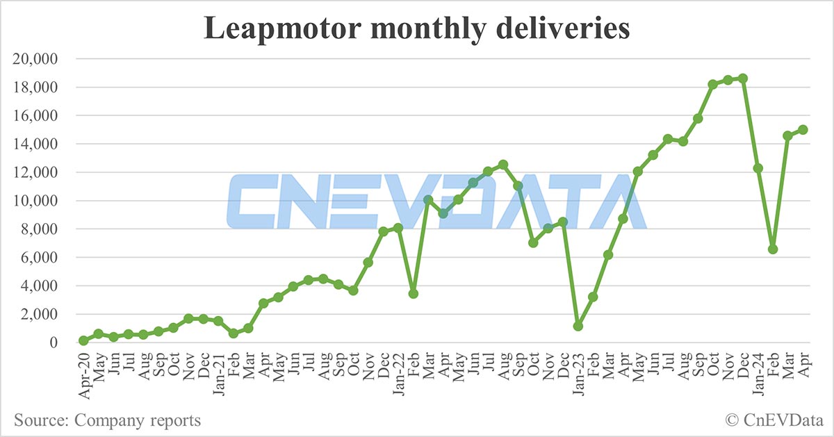 Leapmotor deliveries in April increased by 71.96 percent year-on-year, up 3.01 percent from March.