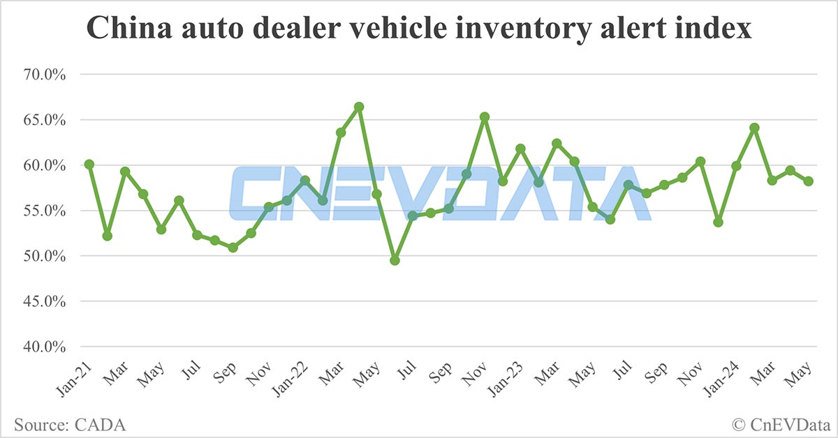 China’s Vehicle Inventory Alert (VIA) Index stood at 58.2 percent in May, implying that the automotive industry continues to be in contractionary territory.