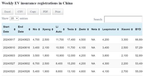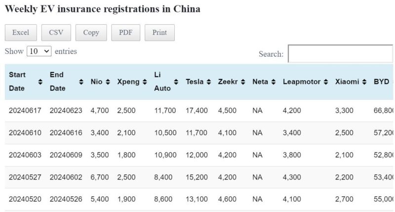 Weekly insurance registrations for vehicles of Nio, Xpeng, Li Auto, Tesla, Zeekr, Neta, and Leapmotor are included in this article.