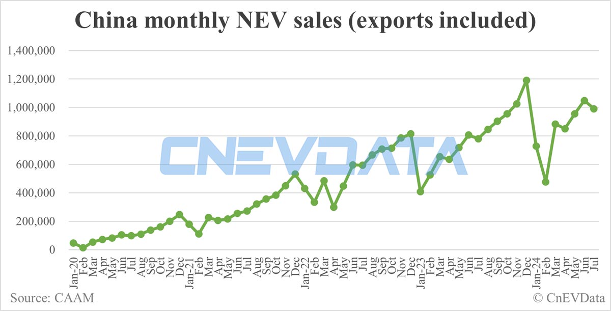 China’s BEV sales in July were 551,000 units, up 2.6 percent year-on-year but down 10 percent from June.