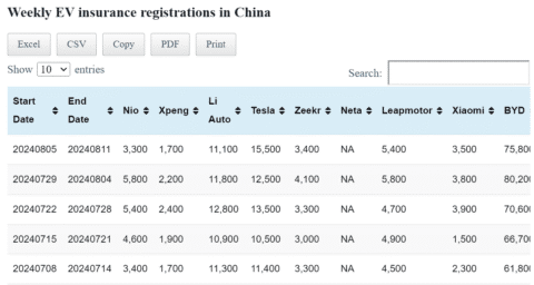Weekly insurance registrations for vehicles of Nio, Xpeng, Li Auto, Tesla, Zeekr, Neta, and Leapmotor are included in this article.