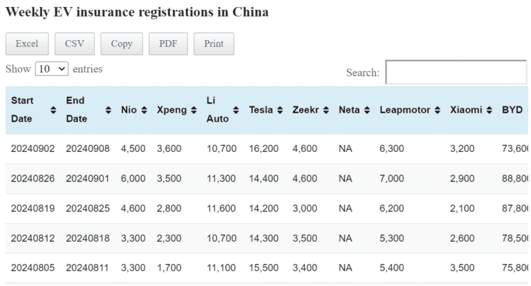 Weekly insurance registrations for vehicles of Nio, Xpeng, Li Auto, Tesla, Zeekr, Neta, and Leapmotor are included in this article.
