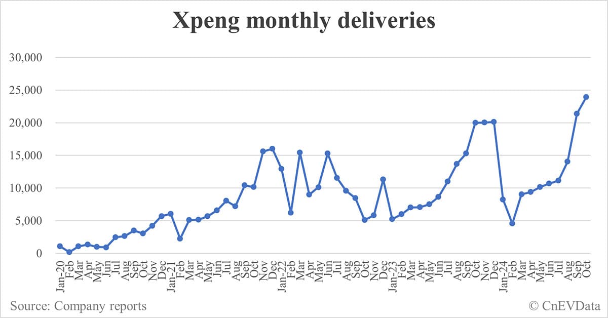 So far this year, Xpeng has delivered 122,478 vehicles, up 20.73 percent year-on-year.
