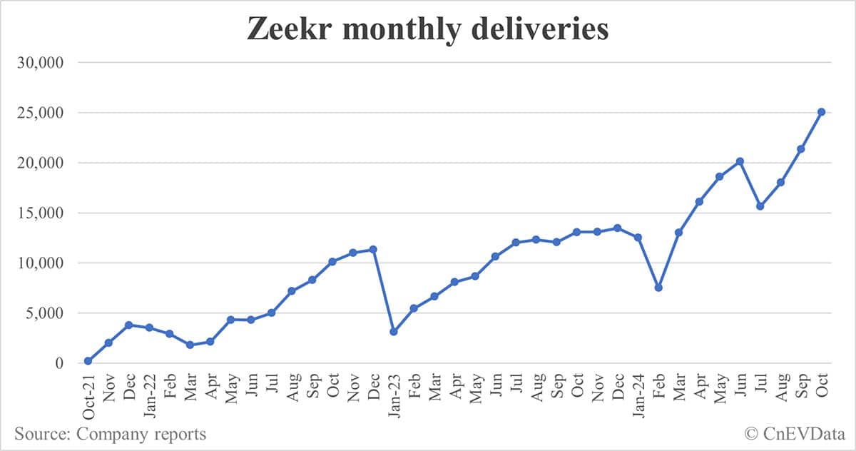 So far this year, Zeekr has delivered 167,922 vehicles, up 82.32 percent year-on-year.