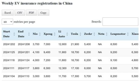 Weekly insurance registrations for vehicles of Nio, Xpeng, Li Auto, Tesla, Zeekr, and Leapmotor are included in this article.