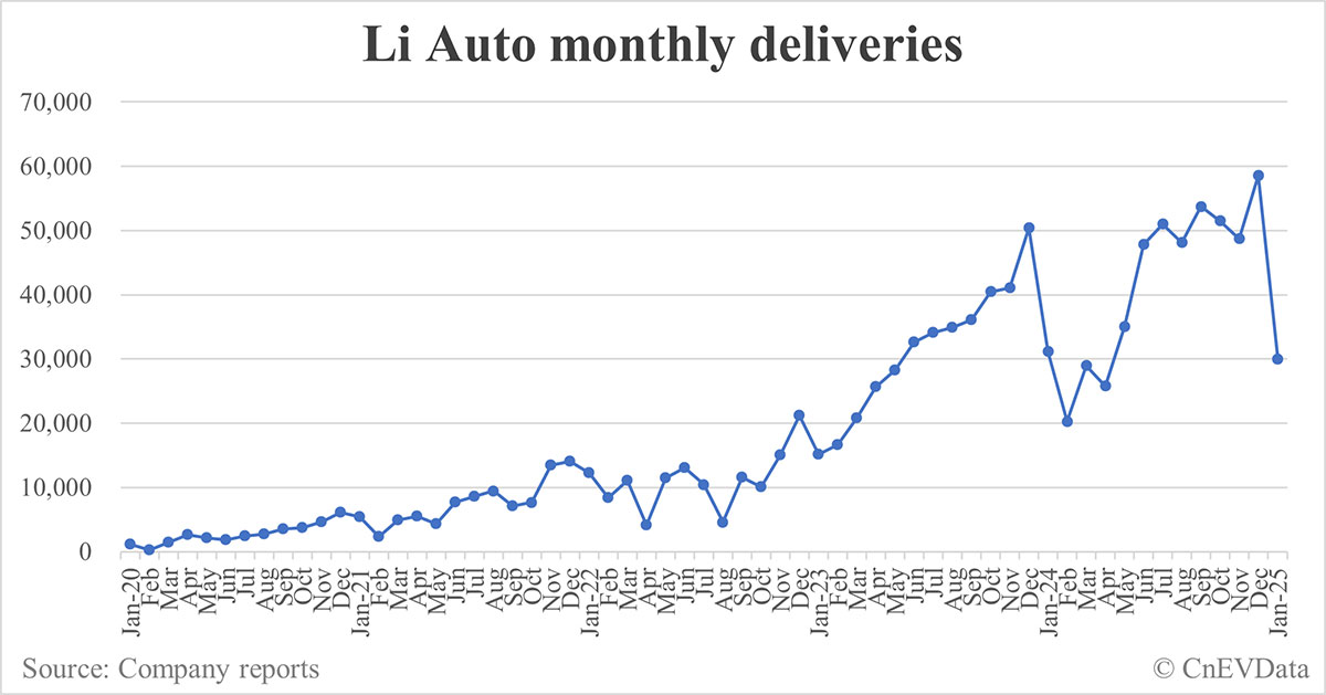 By the end of January, Li Auto’s cumulative deliveries since its inception totaled 1,163,799 vehicles.