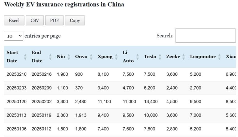 Weekly insurance registrations for vehicles of Nio, Xpeng, Li Auto, Tesla, Zeekr, and Leapmotor are included in this article.