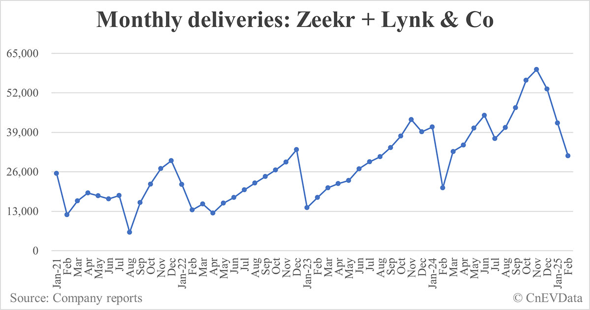 In January-February, Zeekr Group delivered 73,296 vehicles, up 19.31 percent year-on-year.