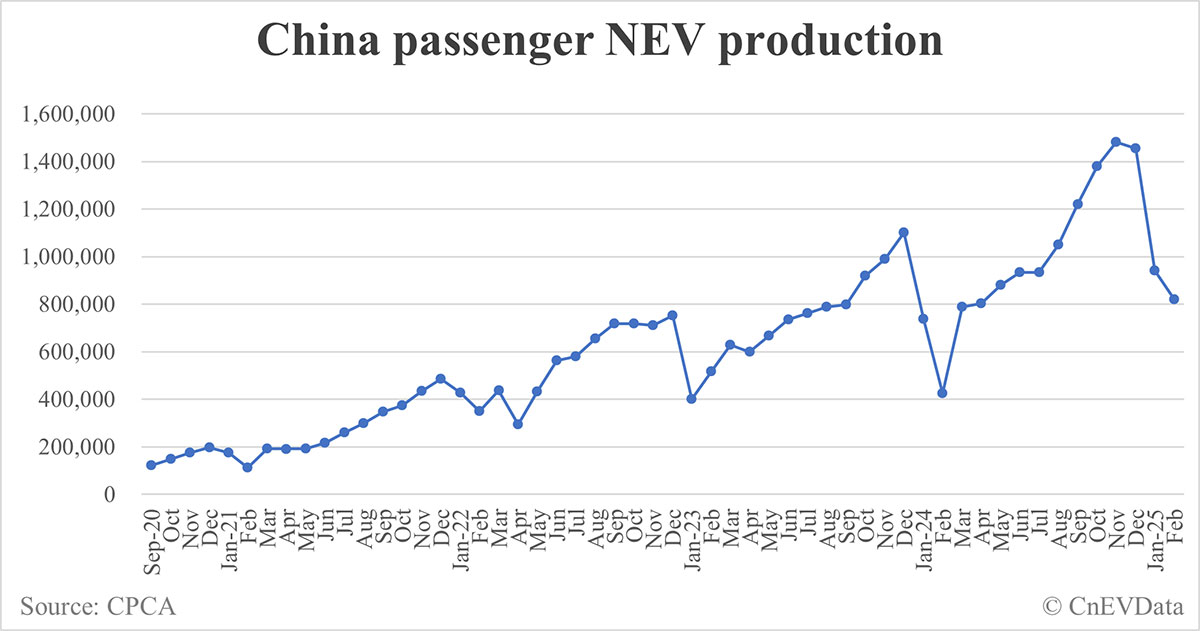 In January-February, China’s passenger NEV production amounted to 1,759,000 units, up 51.12 percent year-on-year.