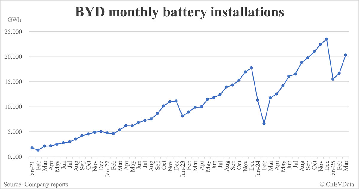 BYD’s power battery and energy storage battery installation capacity in the first quarter was about 52.553 GWh.