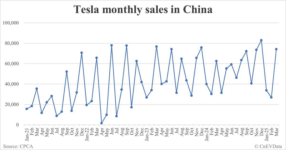 In the first quarter, Tesla’s retail sales in China were 134,607 vehicles, an increase of 1.65 percent year-on-year, but a decrease of 31.64 percent from the fourth quarter of 2024.