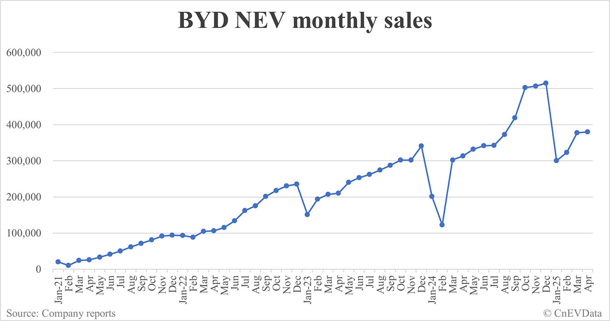 BYD sold 79,086 vehicles overseas in April, up 92.84 percent year-on-year and up 8.75 percent from March.