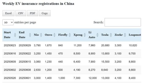 Weekly insurance registrations for vehicles of Nio, Xpeng, Li Auto, Tesla, Zeekr, and Leapmotor are included in this article.