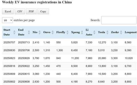 Weekly insurance registrations for vehicles of Nio, Xpeng, Li Auto, Tesla, Zeekr, and Leapmotor are included in this article.