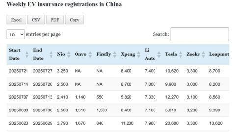 Weekly insurance registrations for vehicles of Nio, Xpeng, Li Auto, Tesla, Zeekr, and Leapmotor are included in this article.