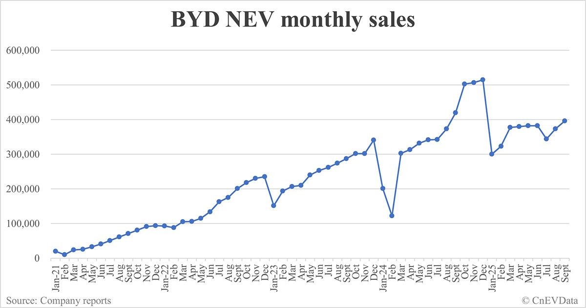 BYD sold 71,256 vehicles overseas in September, marking a 115.85 percent year-on-year increase but an 11.83 percent decrease from August.
