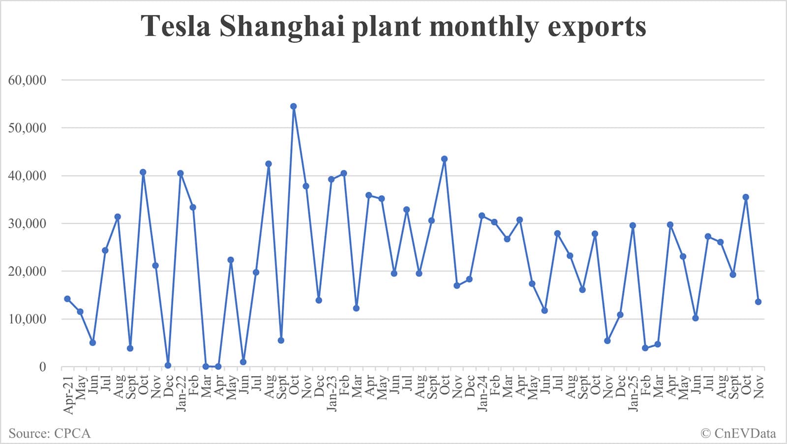 From January to November, Tesla’s Shanghai factory exported 222,706 vehicles, a year-on-year decrease of 10.46 percent.
