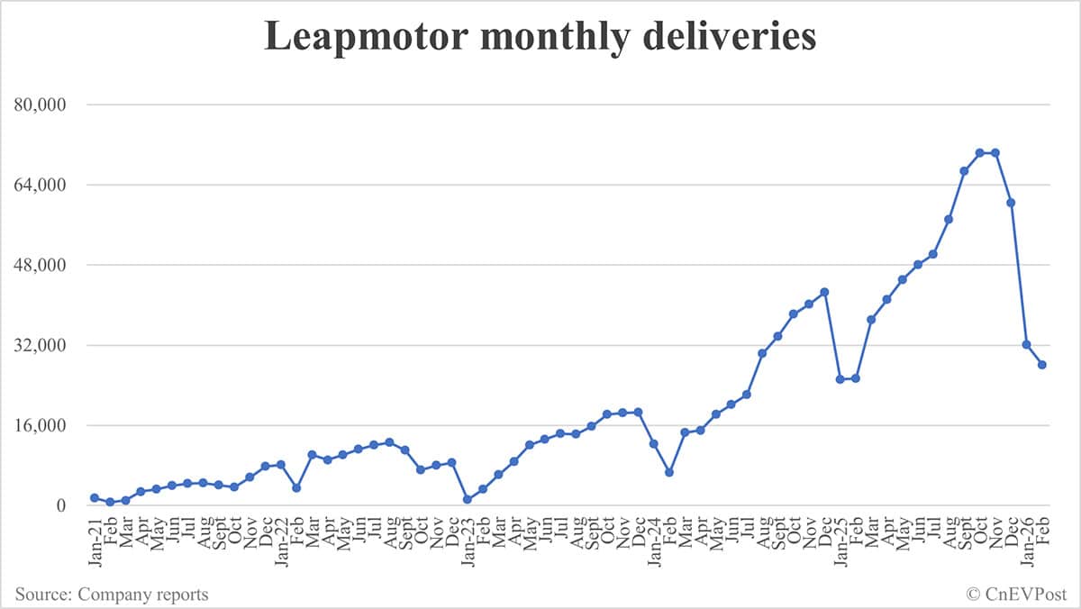 In January-February, Leapmotor delivered 60,126 vehicles, marking a 19.16% year-on-year increase.