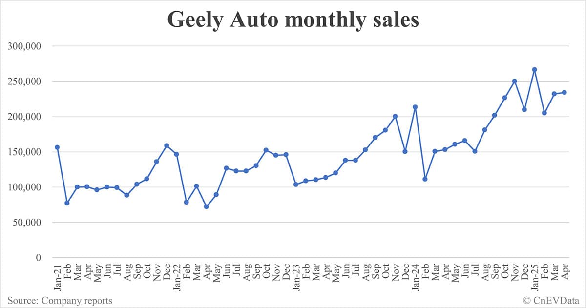Geely Auto sales in Apr: 234,112