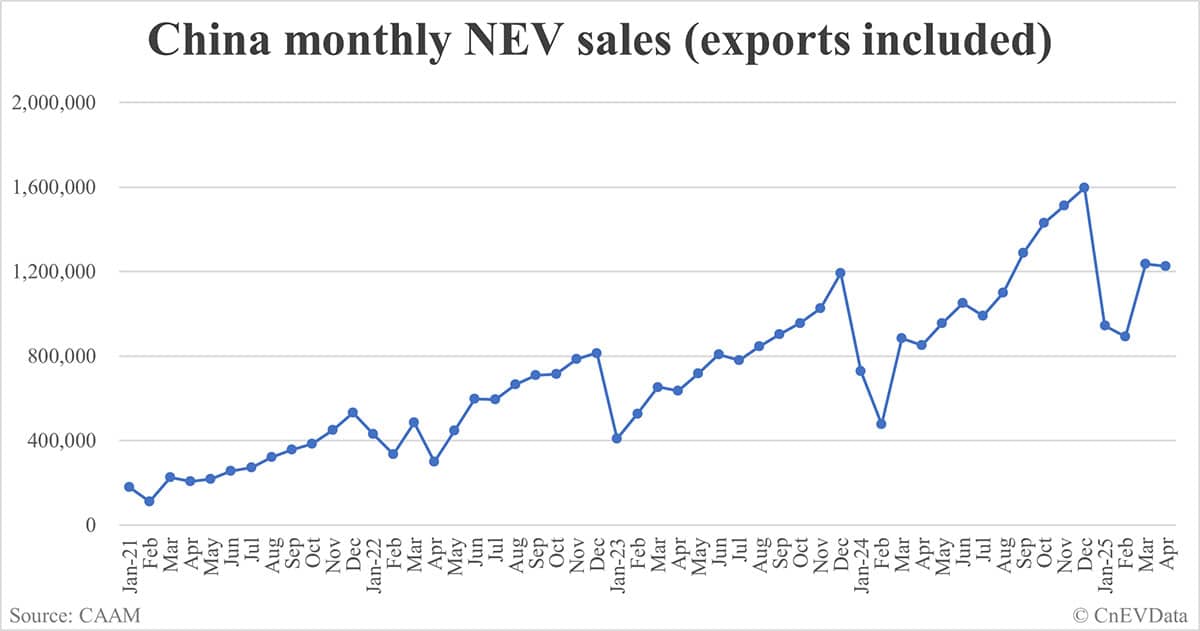 China Apr NEV sales data by CAAM: 1,226,000