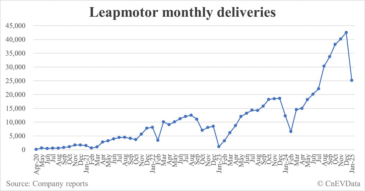 Leapmotor deliveries in Jan: 25,170