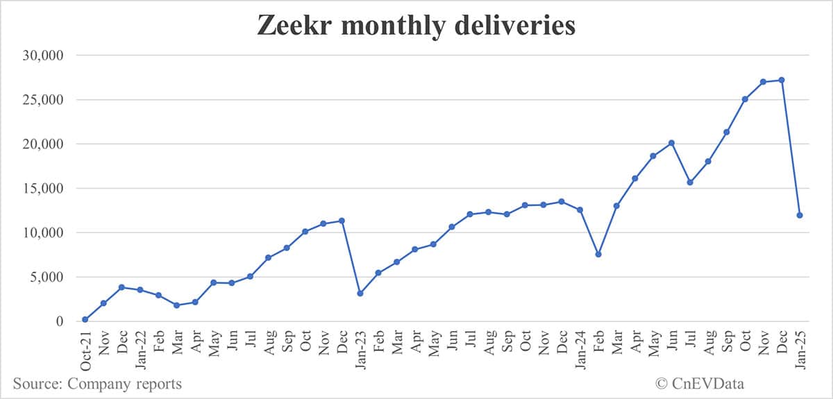 Zeekr deliveries in Jan: 11,942