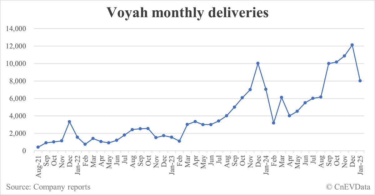 Voyah deliveries in Jan: 8,009