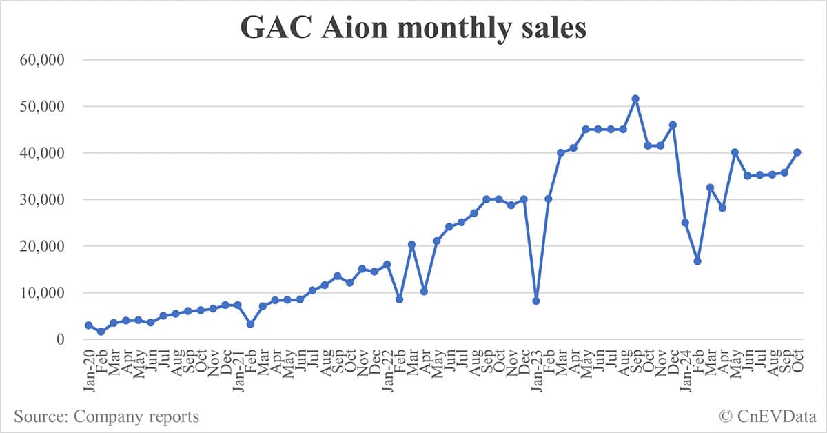 GAC Aion sales in Oct: 40,052