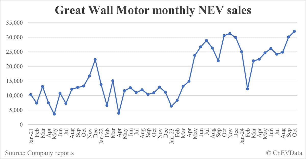 Great Wall Motor NEV sales in Oct: 32,039