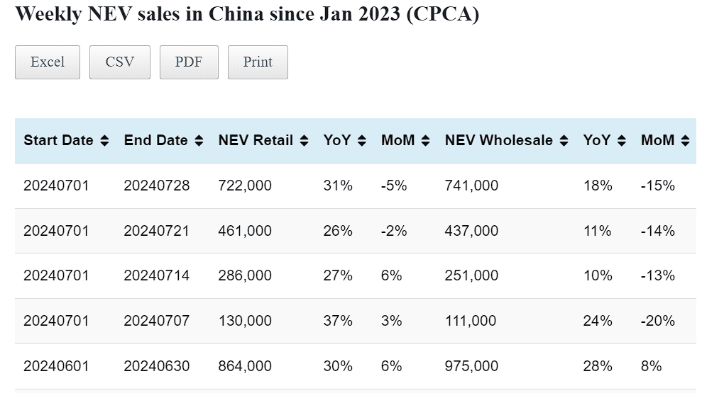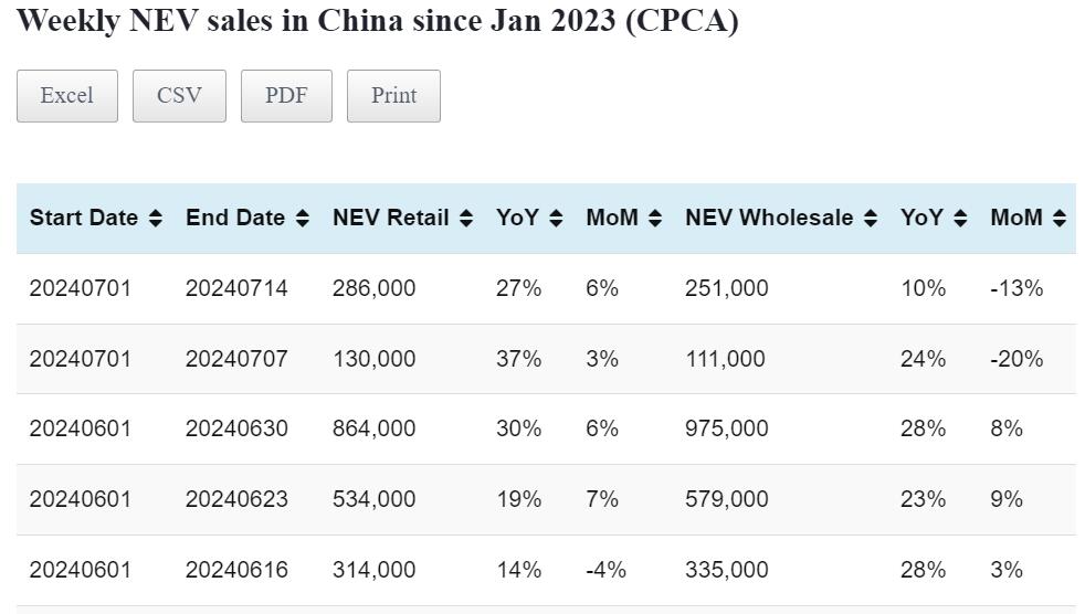 Retail sales of passenger NEVs in China from July 1-7 totaled 130,000 units, up 37 percent from a year ago and up 3 percent from a month ago.